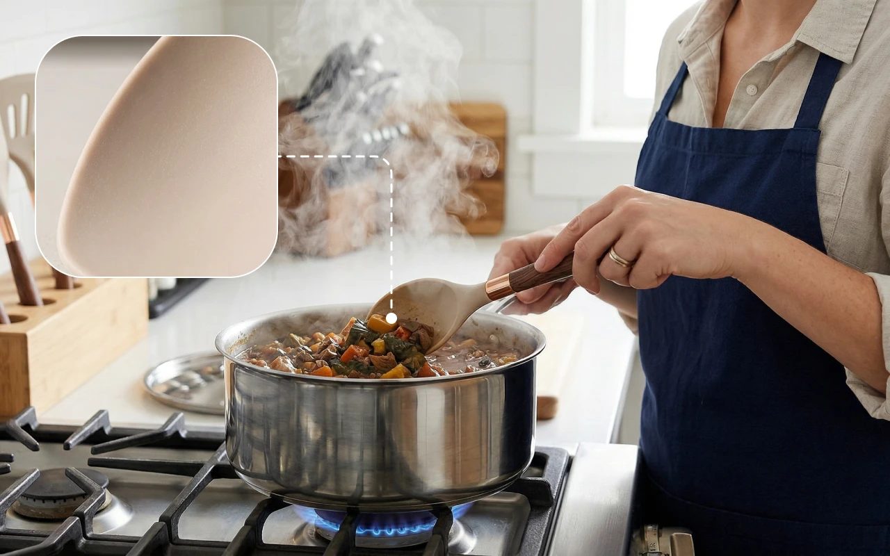 Rezistența la căldură rămâne puternică de la îngheț până la 230°C. Prăjește sau fierbe la foc mic fără topire sau îndoire.