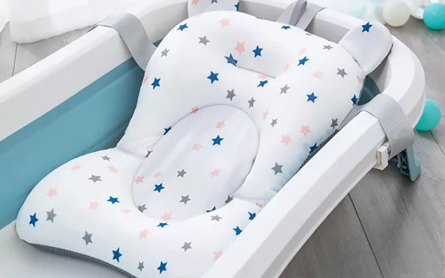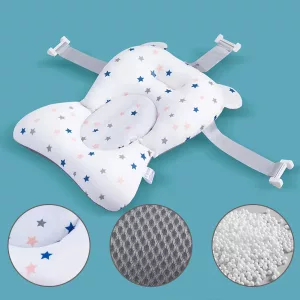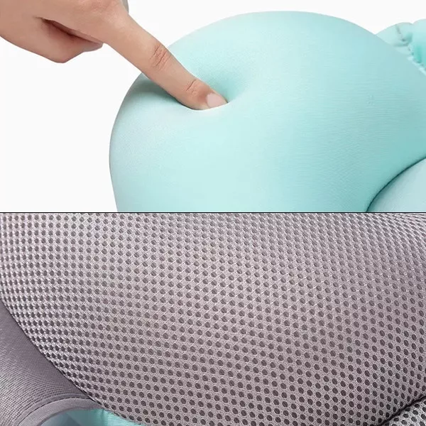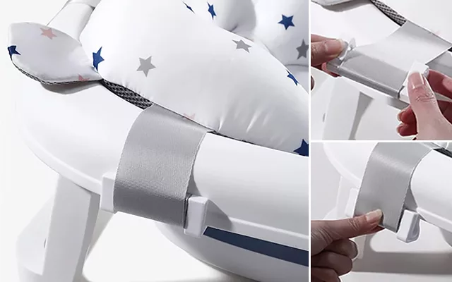 Scaunul nostru este conceput pentru a menține confortul bebelușului în timpul băii. Susține spatele și îl ajută să stea în poziție verticală, prevenind solicitarea corpului.