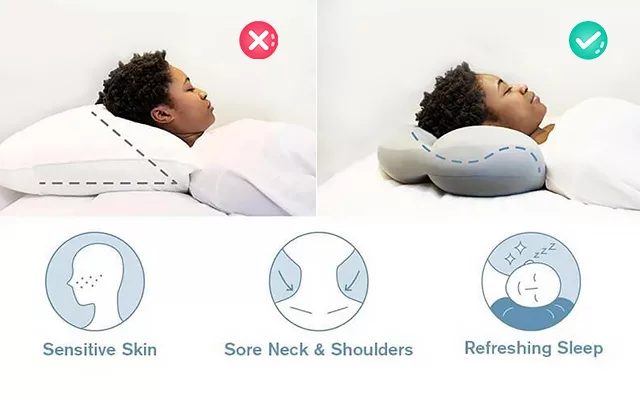 Perna noastră în formă de nor oferă suport optim pentru cap, gât și umeri. Această aliniere menține coloana vertebrală superioară într-o poziție neutră. Ajută la diminuarea rigidității musculare în zona gâtului.