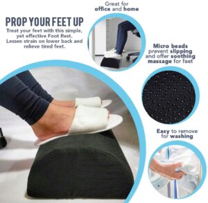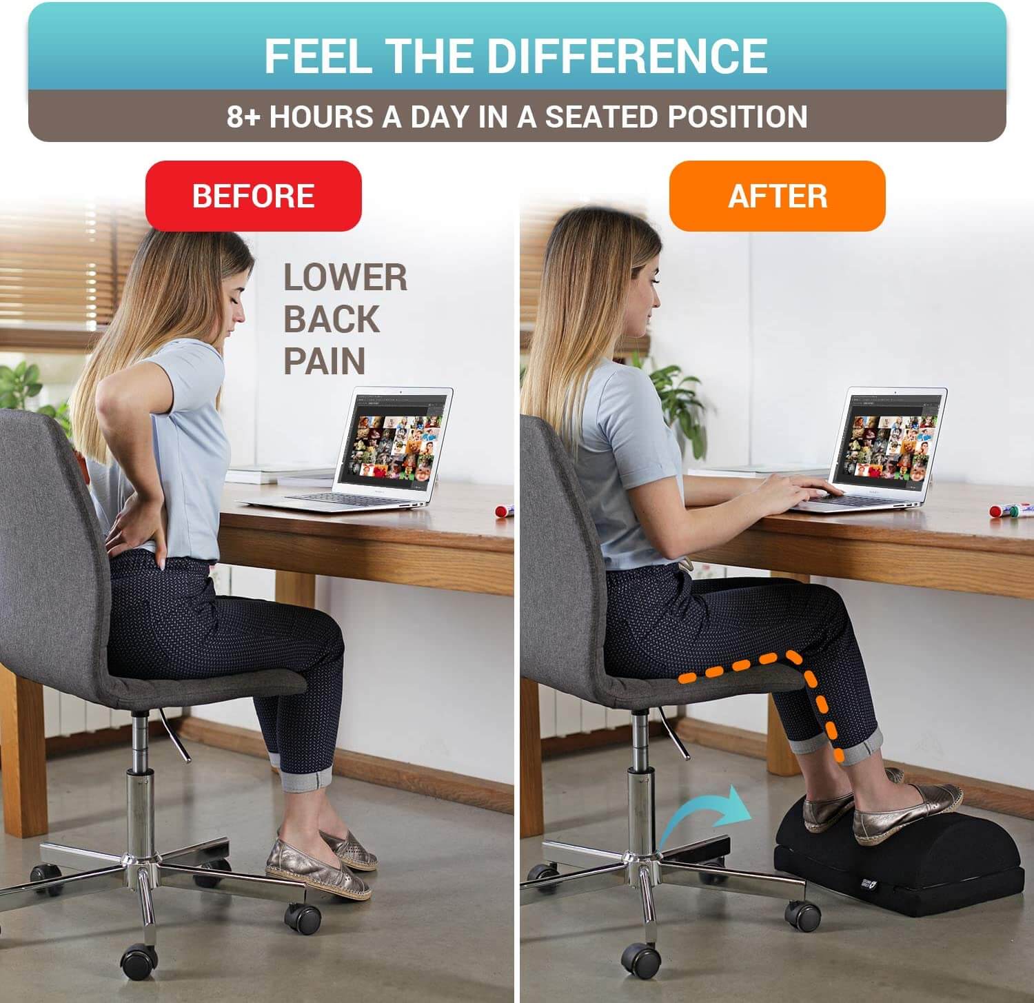 Dacă stai jos mai mult de opt ore pe zi, această pernă pentru odihna picioarelor este perfectă pentru tine! Reduce presiunea asupra picioarelor, a zonei lombare și a taliei, umflarea gleznelor, aliniază corpul pentru a stimula circulația sângelui. Perna oprește durerea și apariția varicelor. De asemenea, previne formarea cheagurilor de sânge care pot duce la tromboză venoasă profundă.