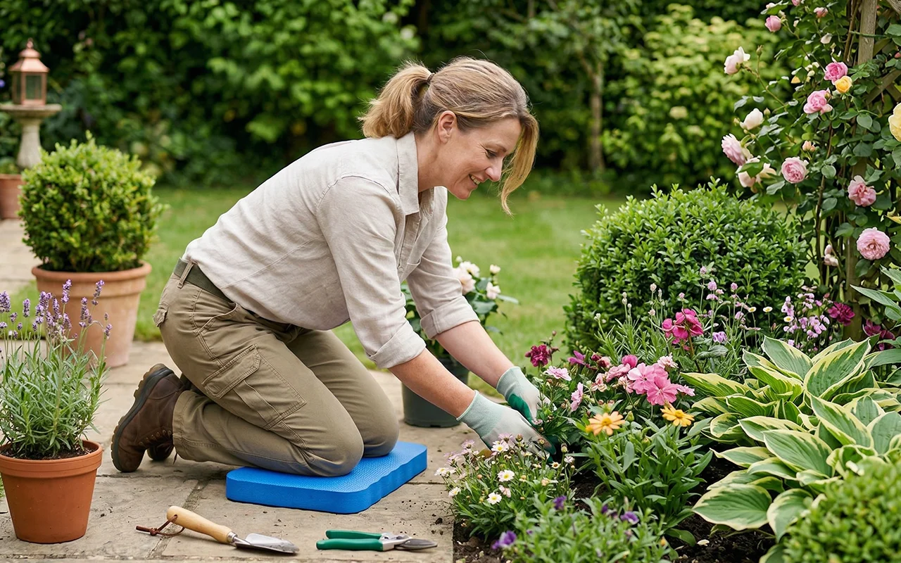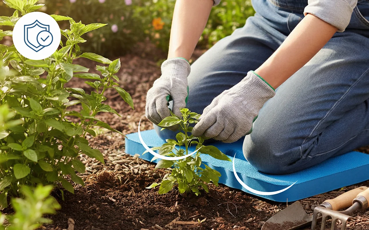 Suprafața groasă de îngenunchere Nygex distribuie uniform greutatea pe ambele picioare. Amortizarea suplimentară reduce efortul astfel încât poți termina plantatul, baia sau reparațiile.