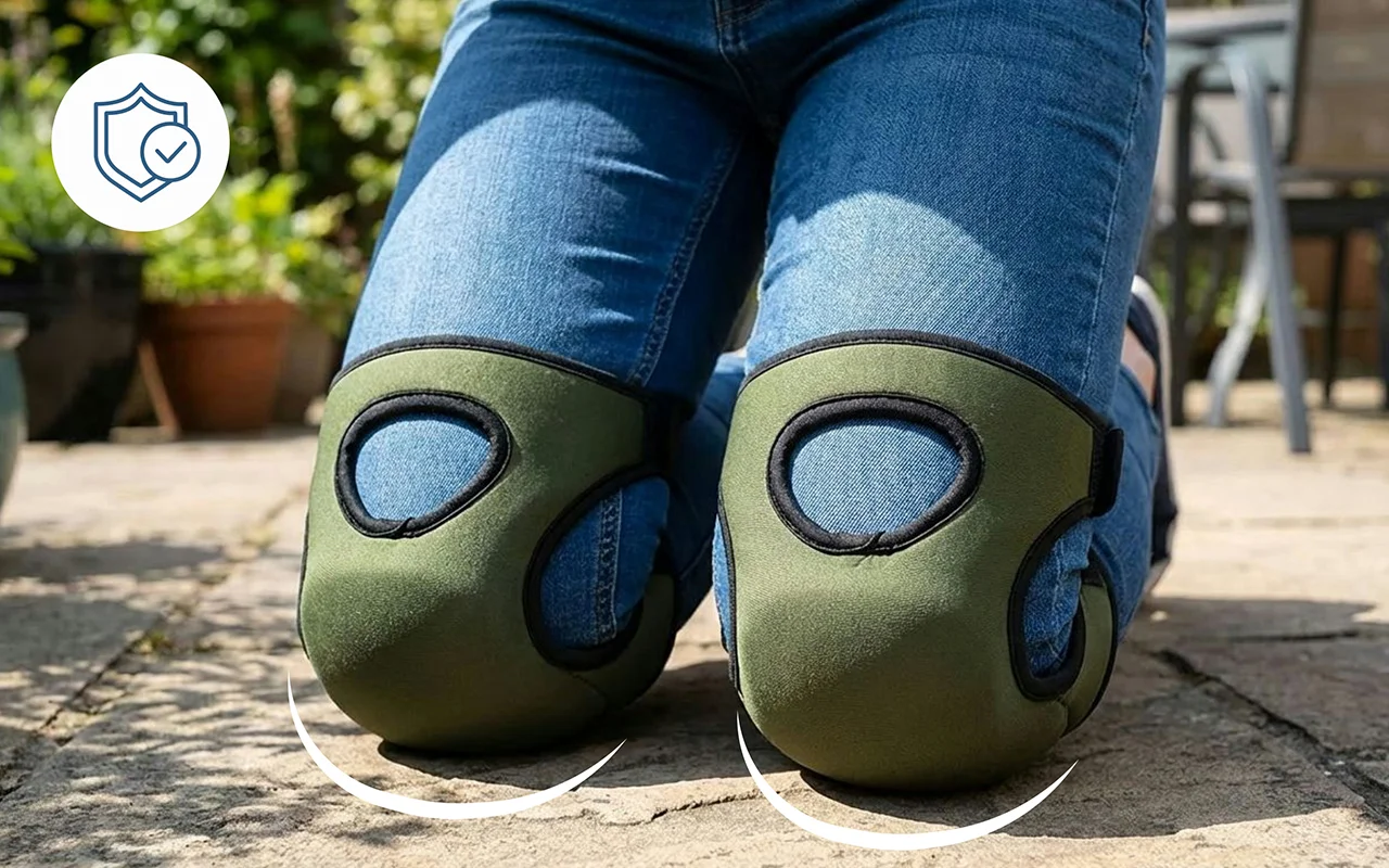 Curelele reglabile îmbrățișează ferm picioarele și previn alunecarea enervantă. Apleacă-te, întinde-te, târăște-te sau stai în picioare cu încredere în timpul grădinăritului sau reparațiilor.