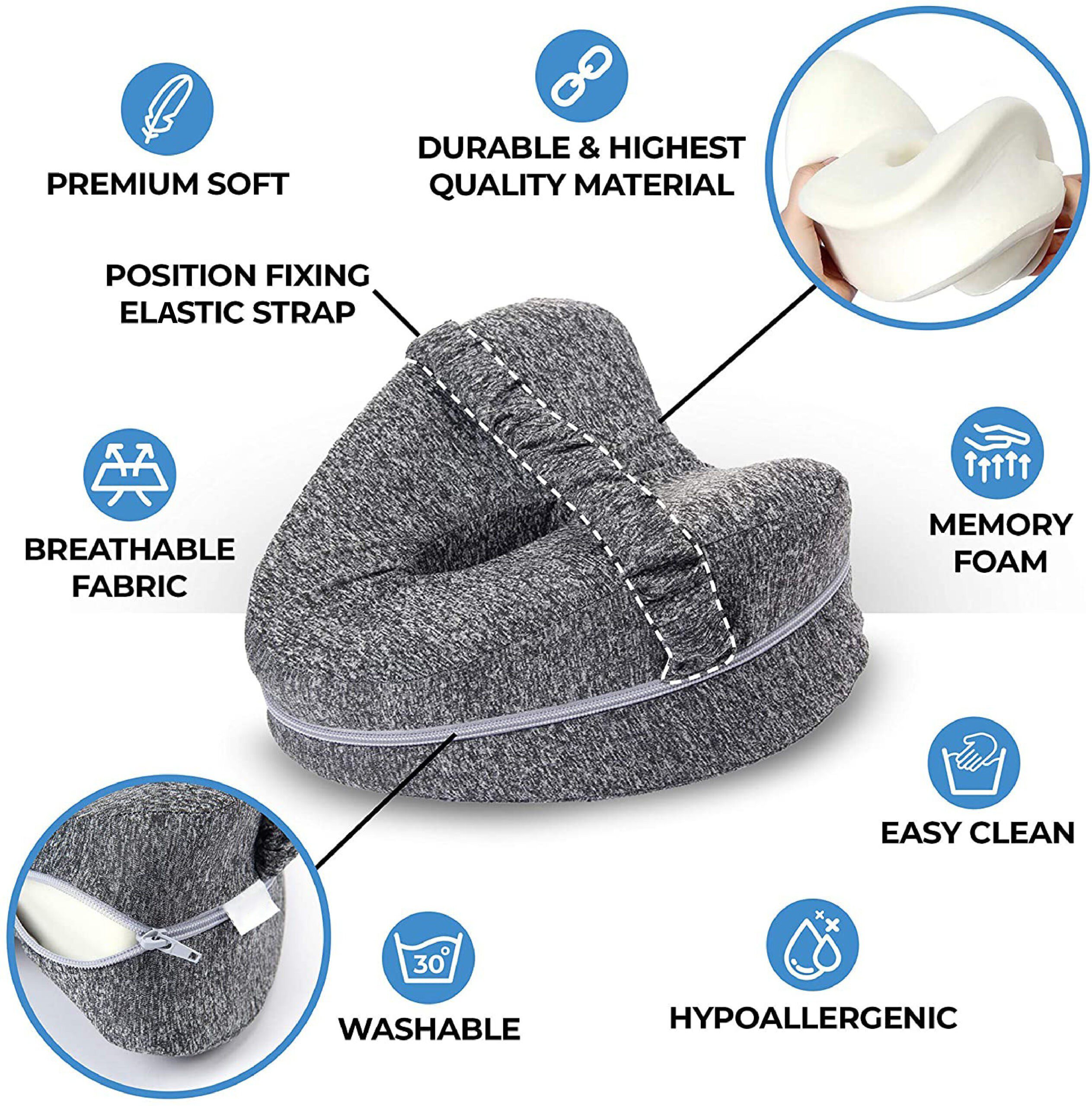 ✔️ BURETE PENTRU GENUNCHI CU BRETEA — Proiectată să mențină perna fixă pe tot parcursul nopții.