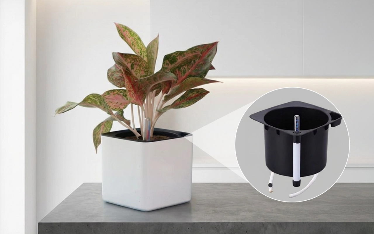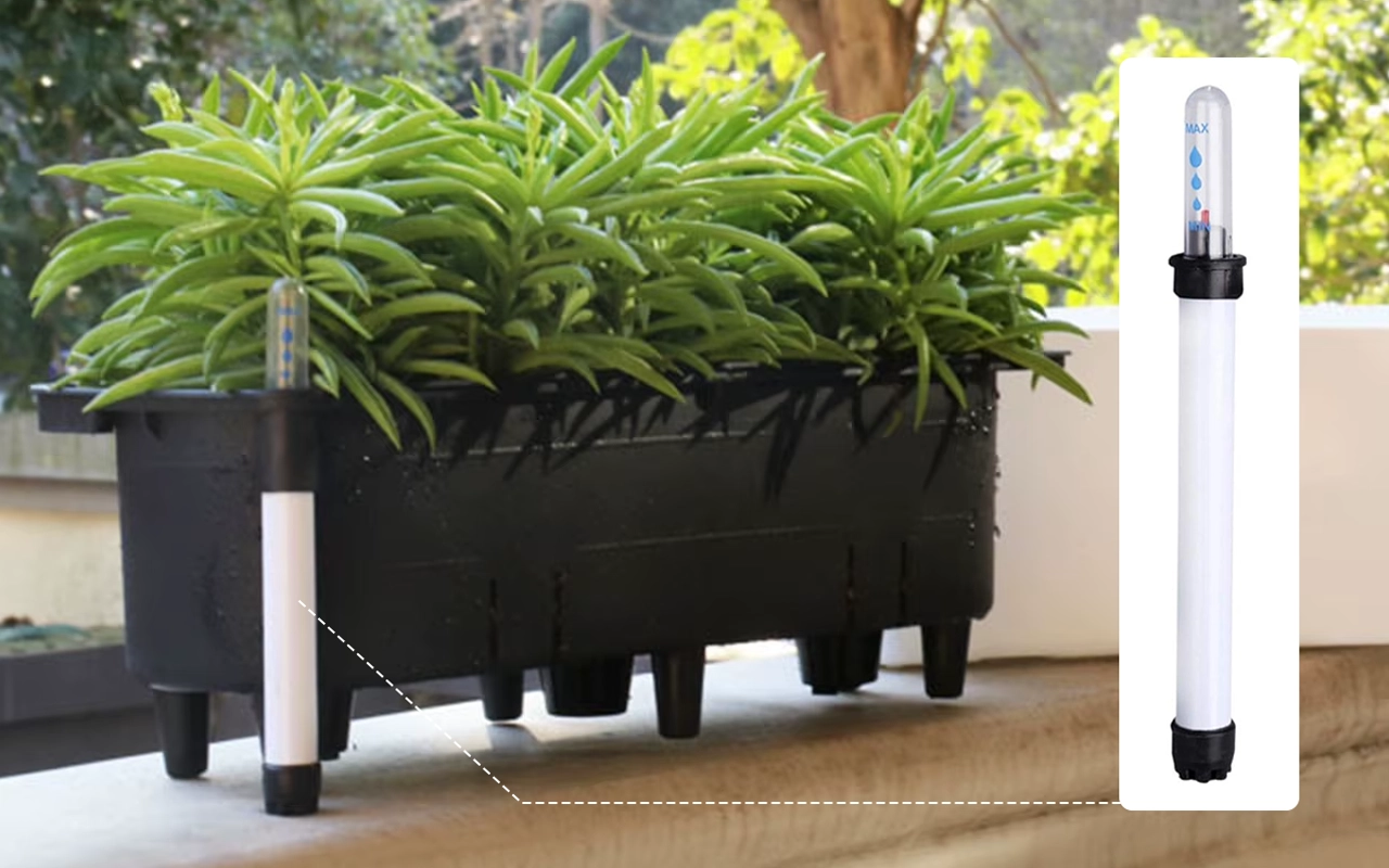 O fereastră transparentă arată nivelul de umiditate dintr-o privire. Mai puține greșeli înseamnă rutine mai calme și frunziș mai fericit.