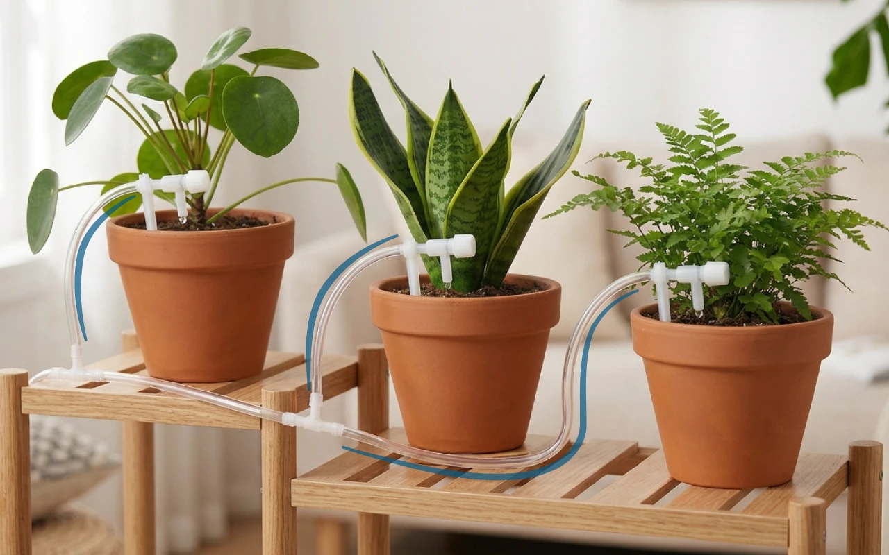 Nu mai ghici când are nevoie fiecare ghiveci de umiditate zilnic. Sistemul de picurare Nygex livrează picături constante direct în sol. Supapele reglabile se adaptează nevoilor fiecărei plante, fără risipă. Bucură-te de frunze mai verzi economisind timp și apă.