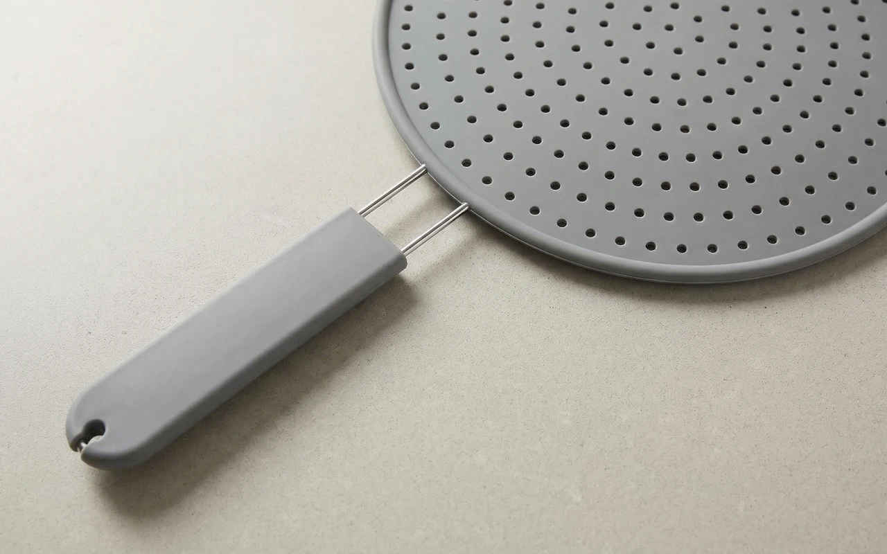Scutul Nygex funcționează și ca strecurătoare, suport de răcire sau tavă de scurgere. Un singur instrument inteligent economisește spațiu în dulap și simplifică treburile zilnice din bucătărie.