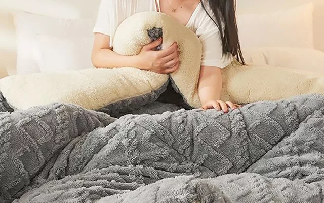În loc să dați mai tare la termostat, înfășurați-vă în această pătură din fleece. Va reține căldura aproape de corp, asigurând o căldură superioară.