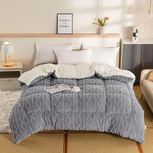 Pătura groasă Nygex este un accesoriu indispensabil pentru zilele friguroase. Materialul său greu oferă o izolație excepțională, menținându-vă confortabil pe durata odihnei. De asemenea, designul său elegant va îmbunătăți frumusețea decorului camerei dumneavoastră.