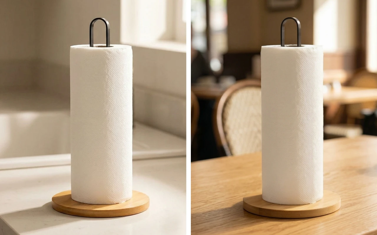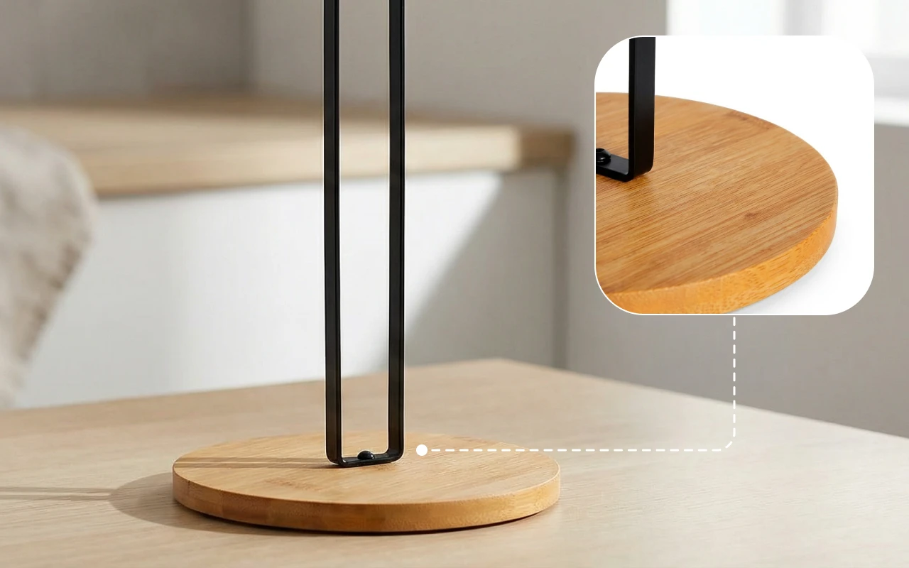 Suportul pentru prosoape de hârtie Nygex păstrează rolele pregătite pentru orice vărsare. Rupeți șervețele rapid în timp ce gătiți, curățați sau în dimineți aglomerate. Baza din bambus rămâne stabilă pe suprafețe umede. Cadrul subțire economisește spațiu și se potrivește încăperilor moderne.