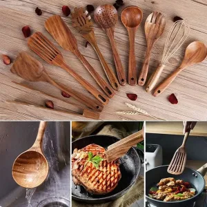 Set Ustensile de Gătit din Lemn cu Spatulă