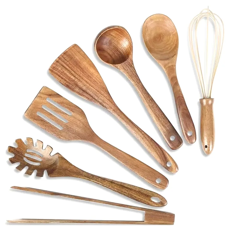Setul de ustensile din lemn Nygex menține vasele de gătit netede și fără urme. Mânerele naturale din bambus rămân reci, astfel încât degetele evită arsurile dureroase. Capetele solide din tec rezistă petelor și mirosurilor pentru preparate cu gust mai proaspăt. O simplă clătire urmată de o uscare delicată păstrează fiecare piesă frumos de curată.